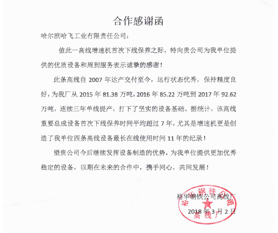 哈爾濱哈飛工業(yè)有限責(zé)任公司旗下的機(jī)電設(shè)備制造產(chǎn)業(yè)是目前國(guó)內(nèi)規(guī)模大、專業(yè)的高速線材軋機(jī)和棒材軋機(jī)整機(jī)及備件的生產(chǎn)制造企業(yè)。公司現(xiàn)坐落于哈爾濱市平房區(qū)汽車零部件工業(yè)園B區(qū),占地面積30000多平方米?,F(xiàn)有員工近550人,其中具有中高級(jí)職稱的研發(fā)及工程技術(shù)人員100余人。   公司曾獲得冶金部授予的“高線軋機(jī)設(shè)備優(yōu)單位”稱號(hào)、國(guó)家技術(shù)進(jìn)步二等獎(jiǎng)等獎(jiǎng)項(xiàng),公司生產(chǎn)的十八項(xiàng)高線軋機(jī)重要部件通過了技術(shù)鑒定... +MORE