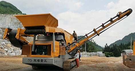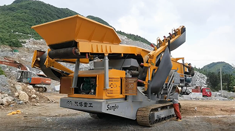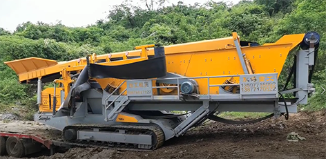 履帶式移動破碎站,液壓驅(qū)動,在山地、平地都能行走自如,爬坡能力強,爭分奪秒投入開采作業(yè)。